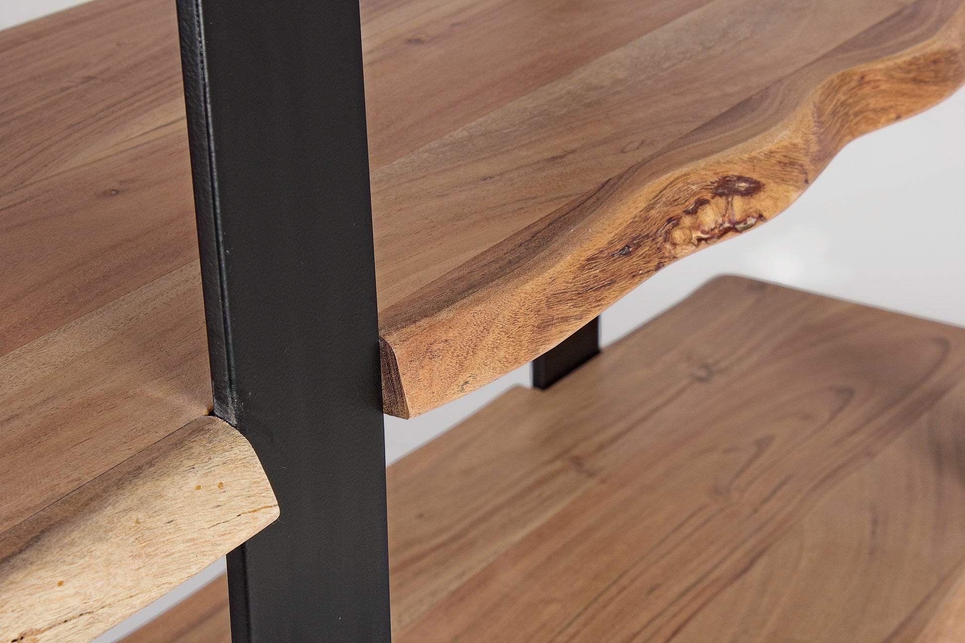Das Bücherregal Artur verbindet natürliche Eleganz mit moderner Robustheit. Die hochwertigen Bretter aus Akazienholz bieten eine warme, lebendige Optik, während das pulverbeschichtete Stahlgestell für Stabilität und Langlebigkeit sorgt. Die feine Polyurethan-Lackierung schützt die Oberfläche und unterstreicht die edle Maserung des Holzes. Ein stilvolles Möbelstück, das Ihre Bücher und Dekorationen perfekt in Szene setzt.