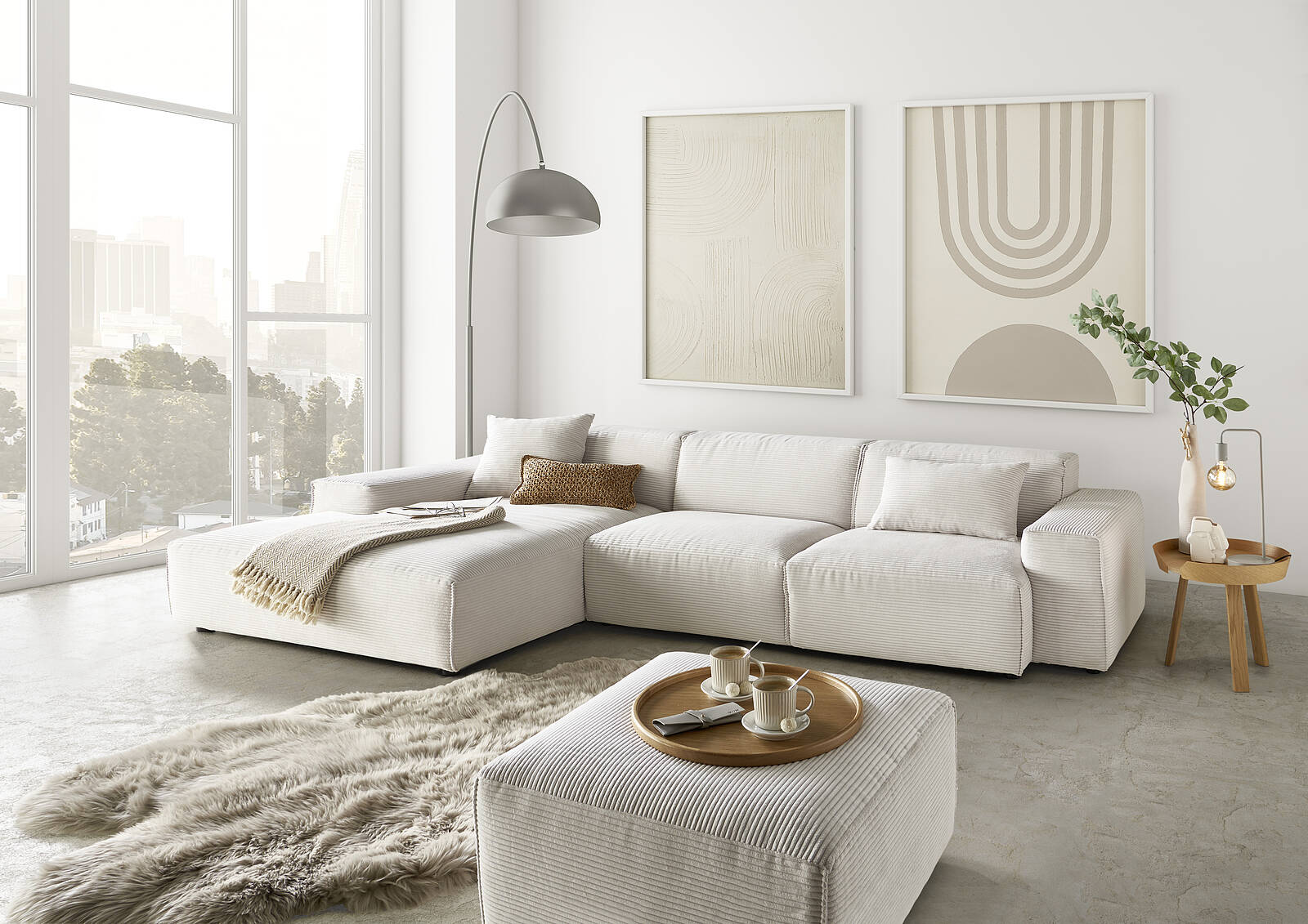 Diese Lounge Wohnlandschaft in der eleganten Farbe Snow ist ein wahres Highlight für Ihr Zuhause. Das Design dieser Wohnlandschaft zeichnet sich durch klare Linien und eine zeitlose Eleganz aus. Sie passt somit nahtlos in jedes Interieur und schafft ein stilvolles Ambiente. Ob zum Relaxen nach einem langen Arbeitstag oder zum gemütlichen Beisammensein – diese Lounge Wohnlandschaft wird schnell zum Mittelpunkt Ihres Zuhauses.