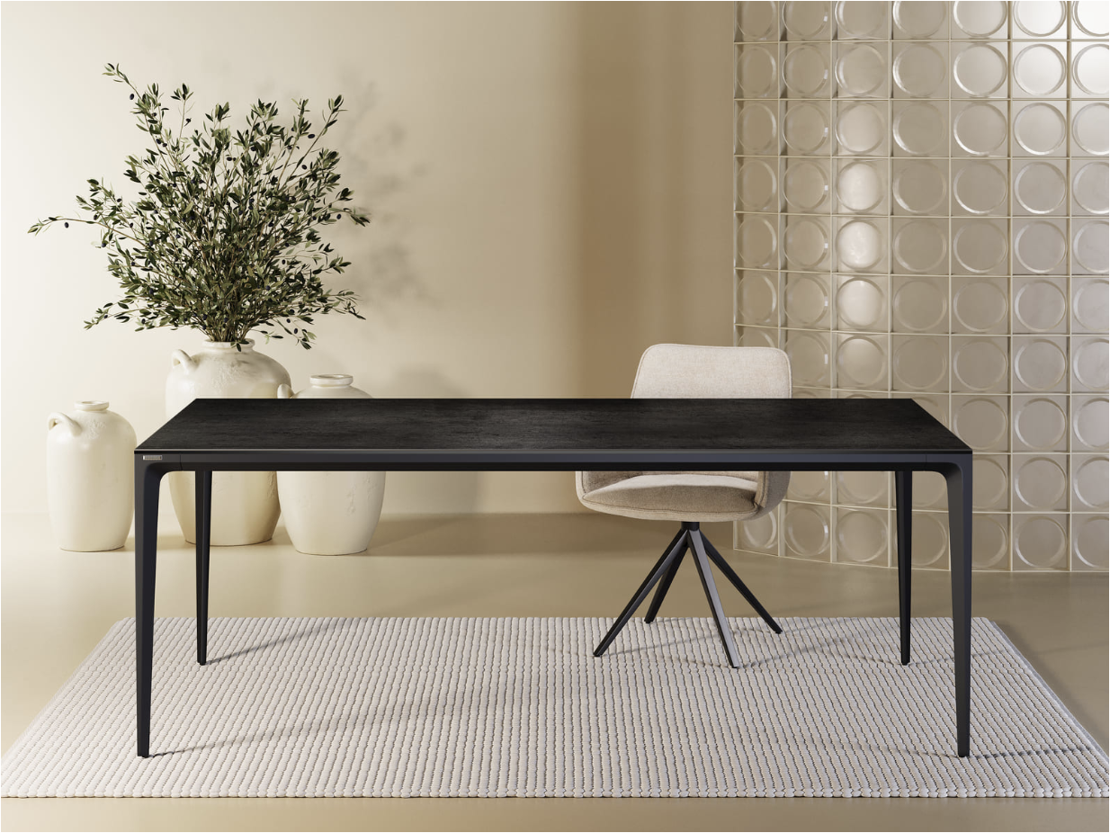 Der Esstisch Valencia überzeugt durch sein zeitloses Design und eine schlichte Keramikoberfläche in Titan, die perfekt zu jedem Wohnstil passt. Die 3 mm dicke Keramik, verbunden mit einer stabilen 8 mm Glasplatte, sorgt für eine elegante und strapazierfähige Tischfläche. Das schwarze Stahlgestell bietet eine stabile Basis bei einer angenehmen Höhe von 74 cm. Mit dem Esstisch Valencia schaffen Sie eine elegante und beständige Atmosphäre, die jahrelang begeistert.