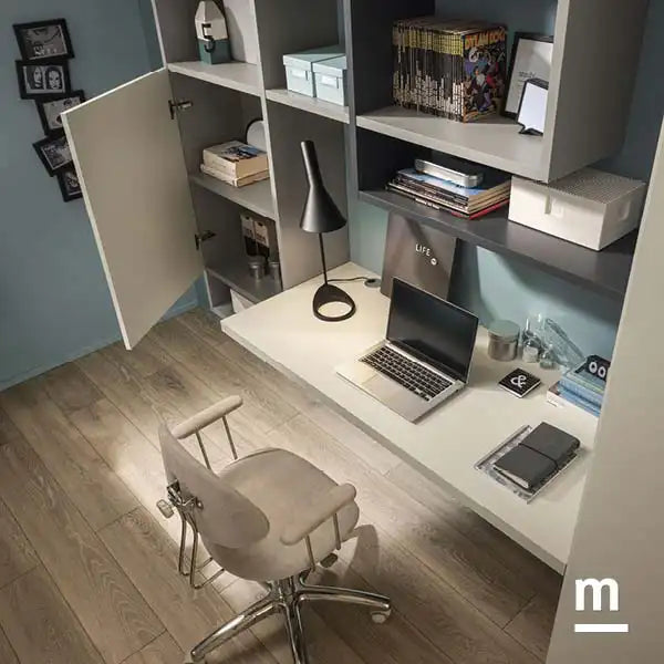 Große Schreibtischnische mit Hänge- & Regalstruktur