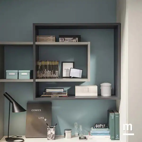 Dieser Raum wirkt klar, persönlich und hochwertig – ohne zu überladen zu sein. Alle Elemente sind modular ausgelegt und visuell aufeinander abgestimmt – ein gemeinsamer Wohlfühl- und Arbeitsort für junge Menschen mit Stilbewusstsein.