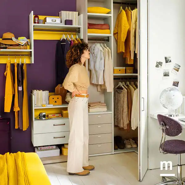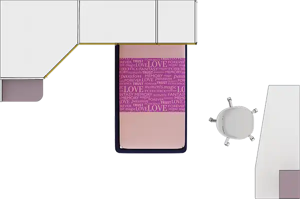 Dieses Raumkonzept bringt Farbe, Struktur und Komfort auf den Punkt. Ideal für Jugendliche, die Ordnung und Designbewusstsein in einem persönlichen Umfeld vereinen möchten – mit viel Stauraum und durchdachten Elementen.