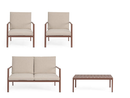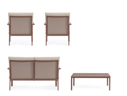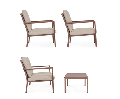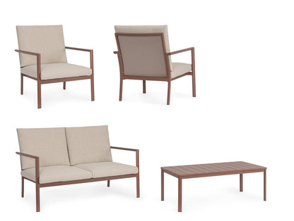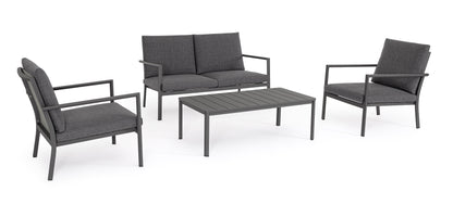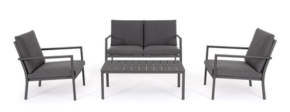 Die Sitzgruppe Konnor überzeugt mit einer robusten, pulverbeschichteten Aluminiumstruktur, die Langlebigkeit und Stabilität garantiert. Sitz und Rückenlehne aus atmungsaktivem Textilene sorgen für angenehmen Komfort, während die abnehmbaren Kissenbezüge aus wasserabweisendem Olefin-Gewebe pflegeleicht und wetterbeständig sind. Edelstahl-Schrauben gewährleisten eine sichere Verbindung, und die Rückenlehnen sowie Tischbeine sind einfach zu montieren – ideal für entspannte Stunden im Freien.