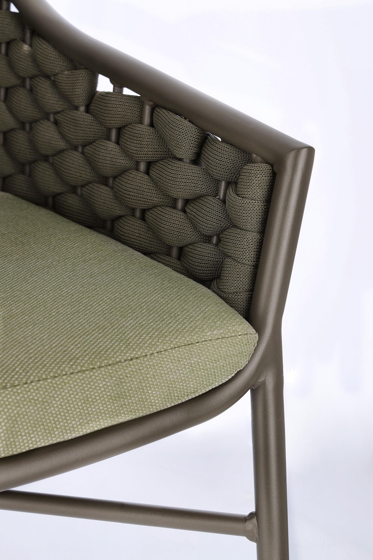 Mit dem Everly zieht Lounge-Feeling in deinen Aussenbereich ein. Der Gartenstuhl mit Armlehnen kombiniert modernes Design mit natürlichen Farben und echtem Komfort. Die Rope-Bespannung in Olive wirkt luftig und elegant zugleich – passend für Garten, Terrasse oder Balkon.