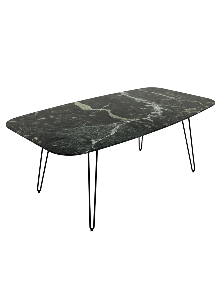 Der exklusive Tisch Amiro vereint Luxus und Funktionalität in einem beeindruckenden Einzelstück. Die lebendige grüne Marmortischplatte mit ihrer glänzenden Oberfläche schafft einen raffinierten Kontrast zum zeitlosen, mattierten Metallgestell in Anthrazit. Diese harmonische Materialkomposition verleiht Ihrem Wohnraum Eleganz und Charakter. Das hochwertige Design macht diesen Tisch zum perfekten Statement-Möbel für anspruchsvolle Einrichtungen, die Qualität und ästhetische Raffinesse schätzen.